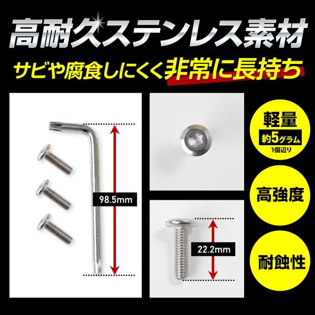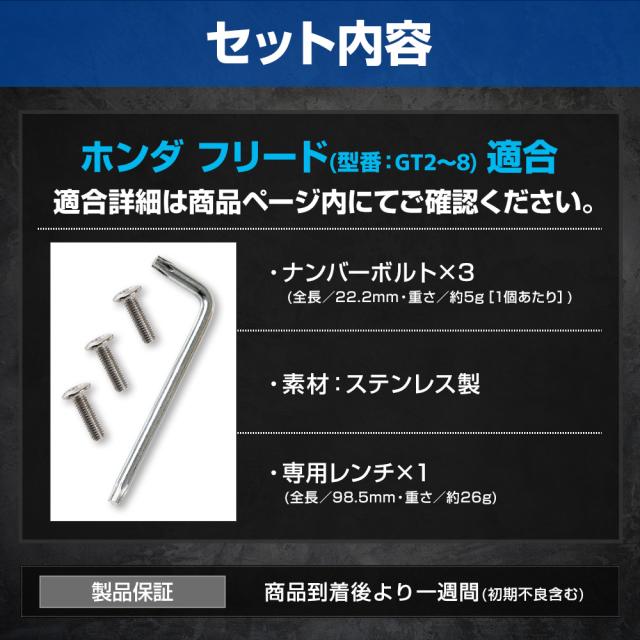 [対象商品タイムセール10%OFF]ホンダ フリード GT系 適合 ナンバープレート ロックボルト M6 x 22.2mm FREED ステンレス製 3本セット 専用レンチ付き [2]