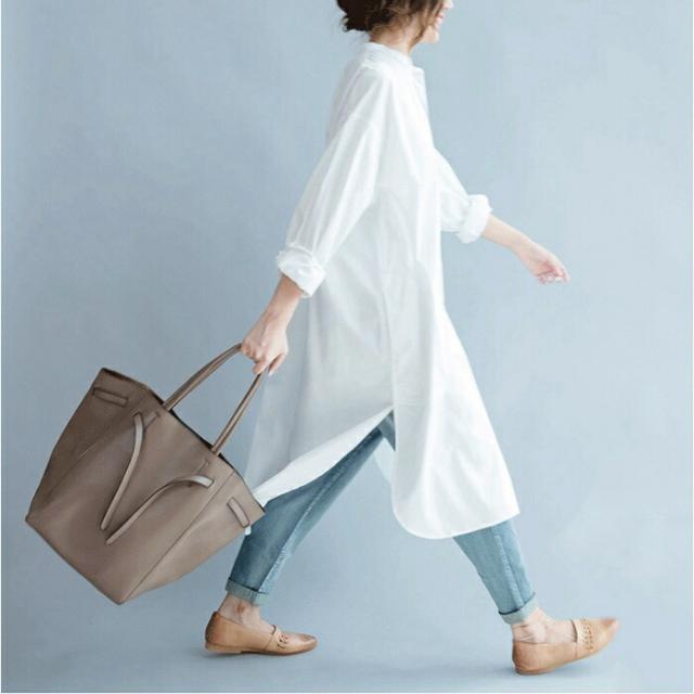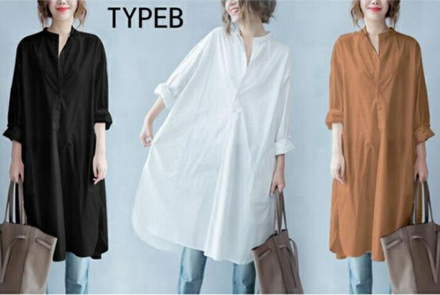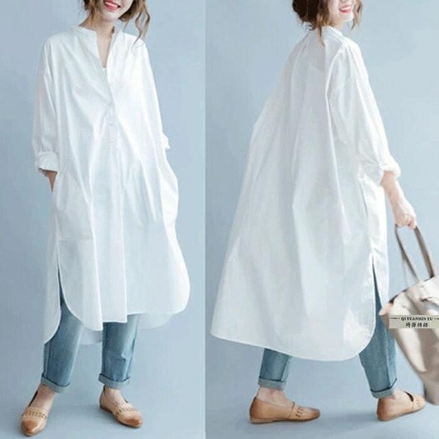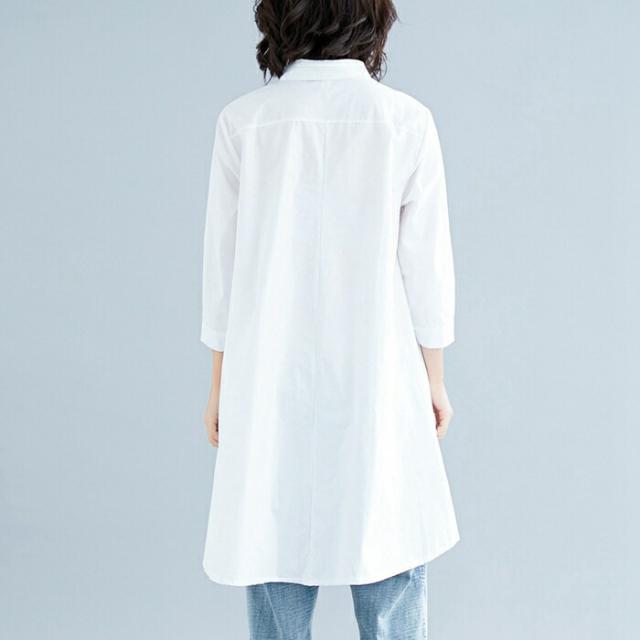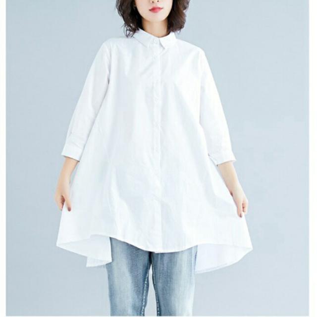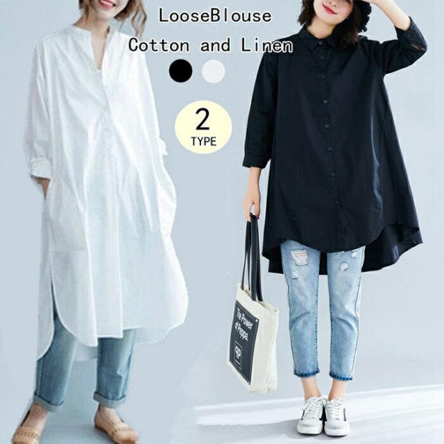 シャツ ロングシャツ フレア レディース トップス チュニック 長袖 綿麻混 コットン リネン Aライン 無地 ボタン付き 白 ホワイト 大きめ 30代 40代