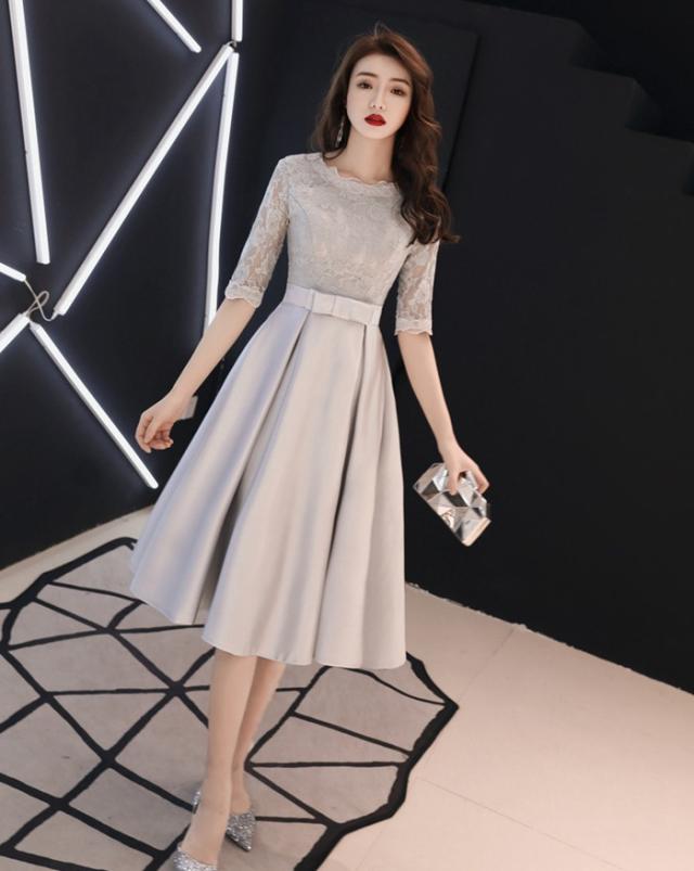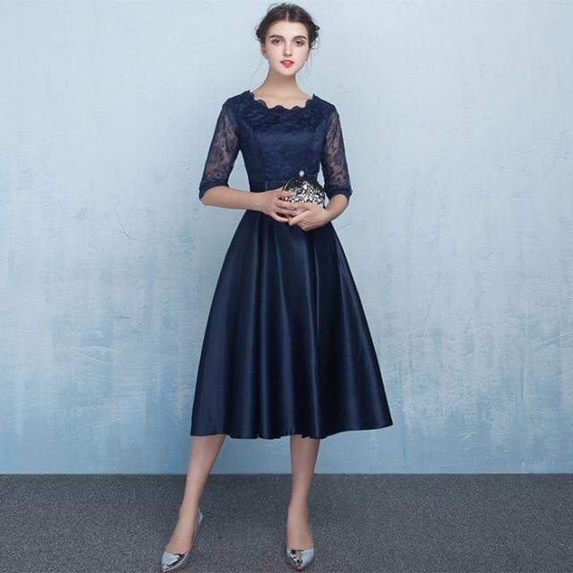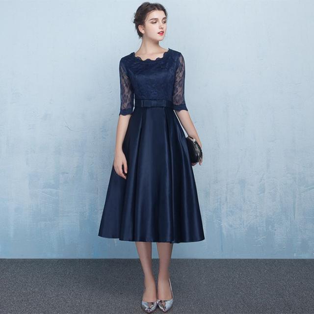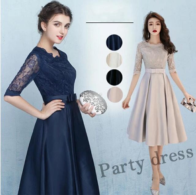 パーティードレス 二次会 花嫁 パーティードレス ミモレ丈 結婚式 お呼ばれ ワンピース 二次会 ゲスト 袖あり
