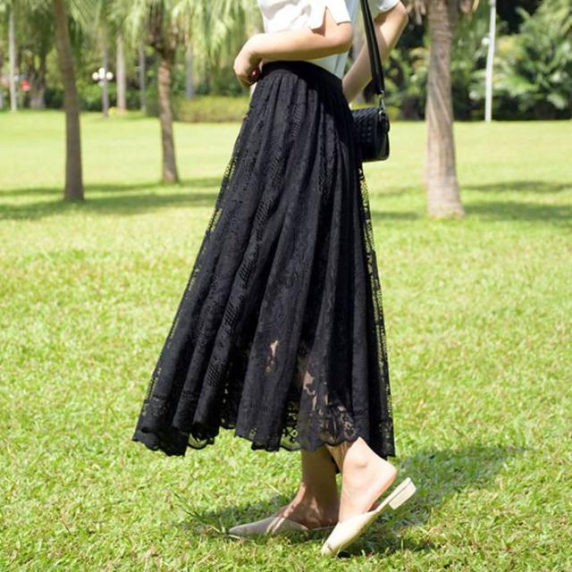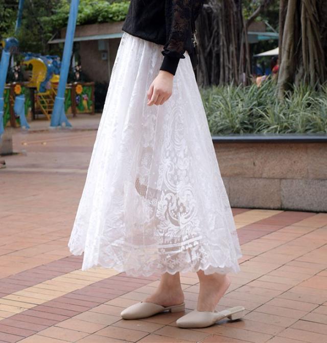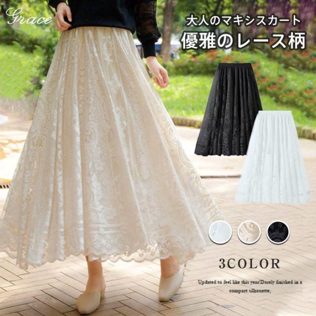 レーススカート フレア ロング スカート ロングスカート レーススカート 総レース スカート レース スカート 美ライン 揺れる レディース 花柄