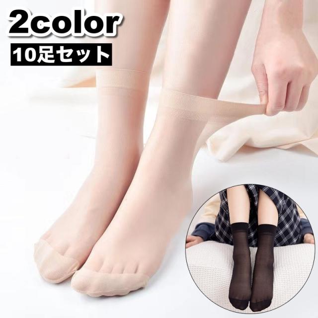 靴下 クルーソックス 10足セット レディース 女性 ショートストッキング シースルー シアー 透け感 薄手 通気性 かわいい