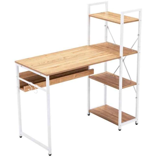 SYALEN パソコンデスク 収納ラック付き デスク 幅104 奥行48 高さ72? PCデスク テレワーク テーブル 勉強机 学習机 左右入替可 モニターアーム取付対応 (ホワイト)