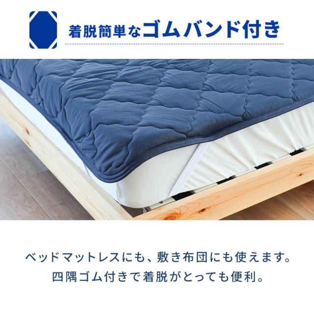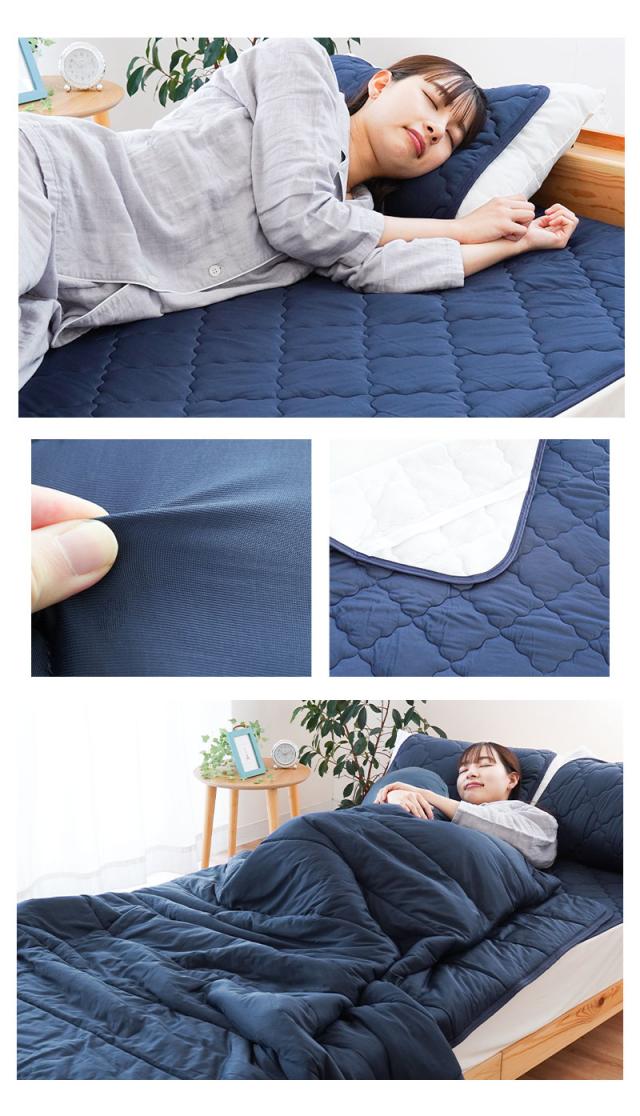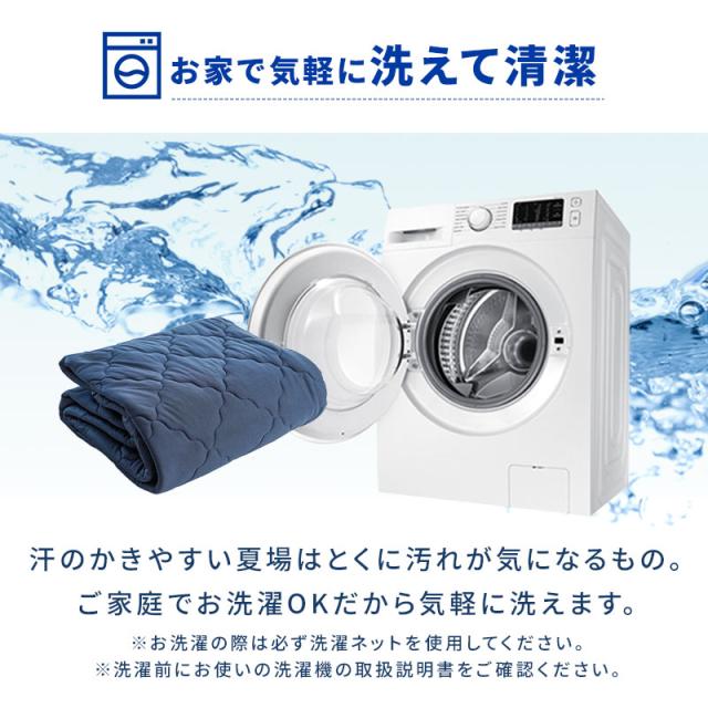 | ・業界トップクラスのQ-max値0.5 生地に触れた瞬間の熱の移動量をわかりやすく数値化したもの。その数値が高いほど、冷たく感じることができます。基準値0.2以上に対し、当商品は約2.5倍の0.5となっています。 ・ひんやり素材で夏を快適に熱伝導率が高い素材を生地に使用しています。寝返りするたび体熱を素早く拡散するので、触れるたびにひんやり快適です。 ・着脱簡単なゴムバンド付きベッドマットレスにも、敷き布団にも使えます。四隅ゴム付きで着脱がとっても便利。 ・お家で気軽に洗えて清潔汗のかきやすい夏場はとくに汚れが気になるもの。ご家庭でお洗濯OKだから気軽に洗えます。 | |