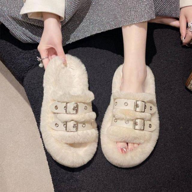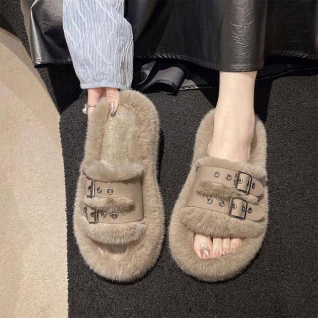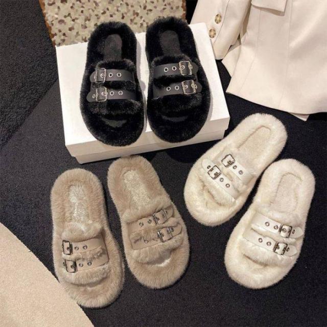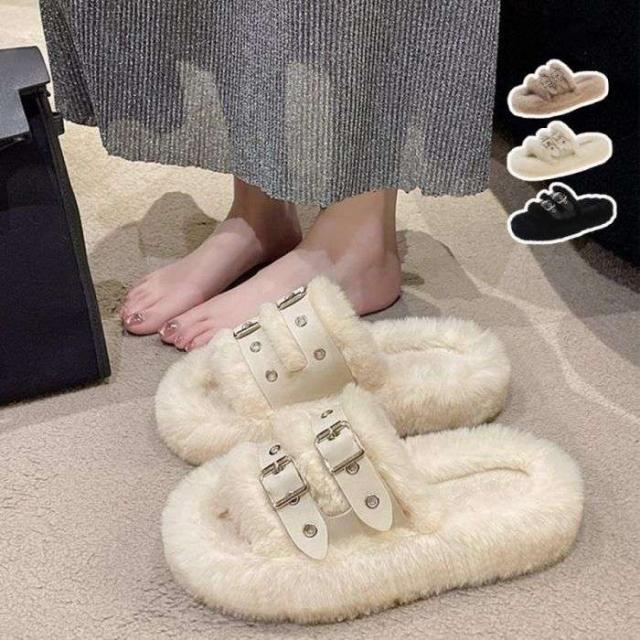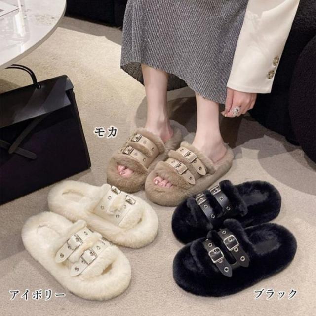 韓国ふわふわ 厚底サンダル ぺたんこ ファースリッパ 歩きやすい おしゃれつっかけ 暖かい もこもこ ルームシューズ秋冬