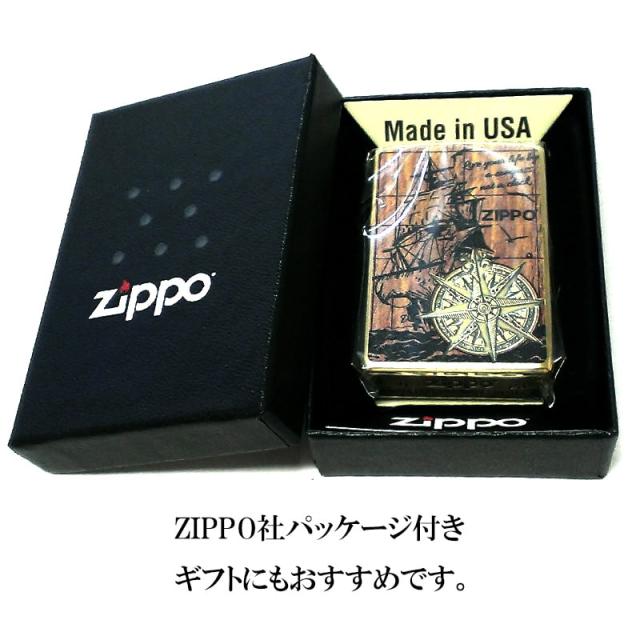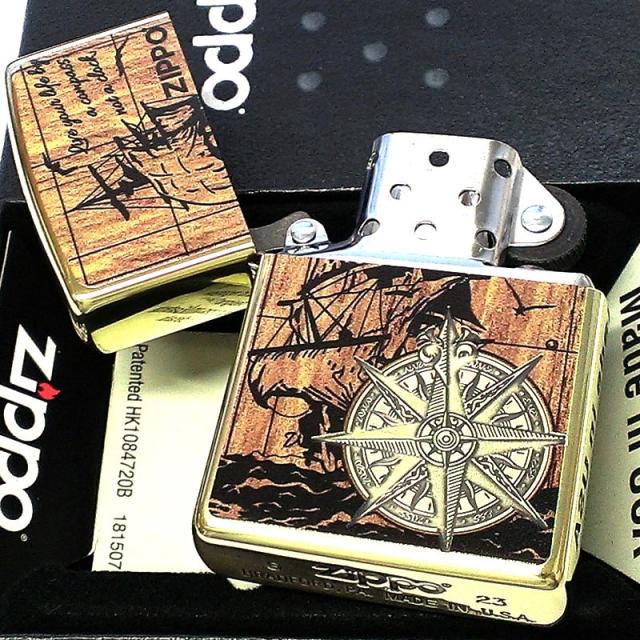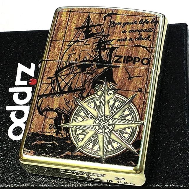 ZIPPO ライター コンパス 真鍮いぶし仕上げ ジッポー ゴールド 帆船 かっこいい 羅針盤 木目調 COMPASS ブラス メンズ おしゃれ ギフト