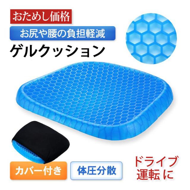 ゲルクッション ジェル カバー 座布団 通気性 車 椅子 長時間 ハニカム構造 体圧分散 オフィス お尻 負担軽減 フィット 低反発 運転 腰痛 耐久性