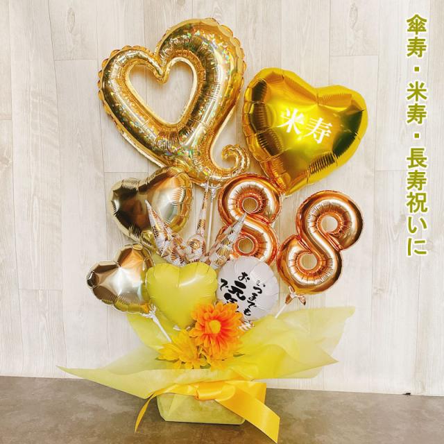 バルーンフラワー 米寿祝い バルーンギフト 傘寿 米寿 誕生日 バルーンアレンジ 長寿祝い おしゃれ 豪華 電報 発表会 80歳 88歳 長寿 卓上 お祝い 敬老の日 数字 プレゼント 男性 女性 黄色 ゴールド