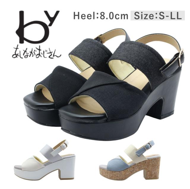 by バイ あしながおじさん レディース サンダル 8490051 バックストラップ スクエアトゥ チャンキーヒール キジ 厚底 歩きやすい 靴 黒 白 青 ブラック ホワイト ブルー