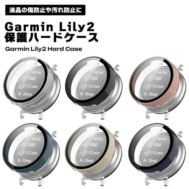 Garmin Lily2 PC素材 強化ガラス ハードケース ケース 保護 画面保護 高級感 液晶 シンプル スマートウォッチ 腕時計 耐衝撃 通勤 通学 傷防止 汚れ防止 指紋汚れ防止 液晶保護