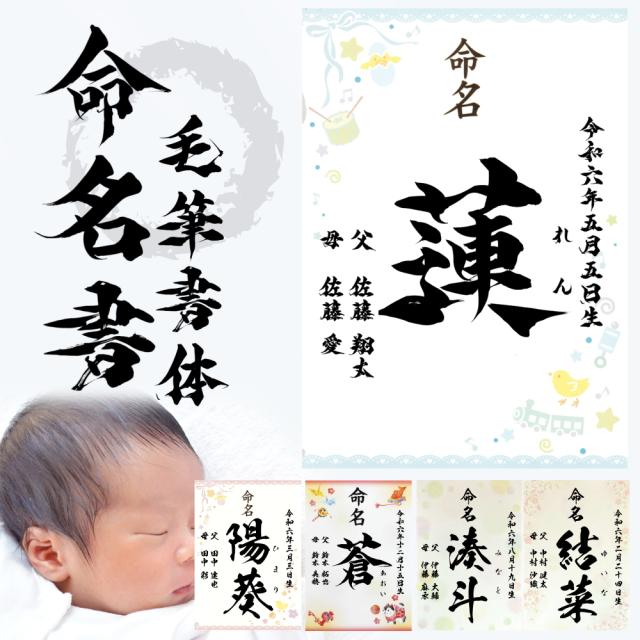 命名書 ブルー (3枚セット) 毛筆 名入れ 命名紙 手書き風 代筆 A4サイズ ラミネート オーダー お祝い 男の子 女の子 記念 出産 ベビー 赤ちゃん 新生児 名付け祝い お七夜 孫 人気 プレゼント 出産祝い 踊華