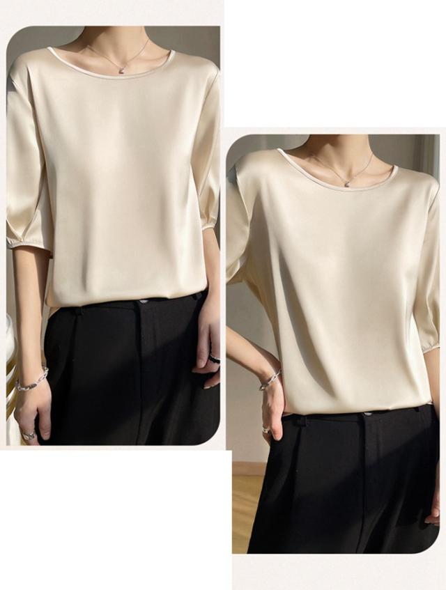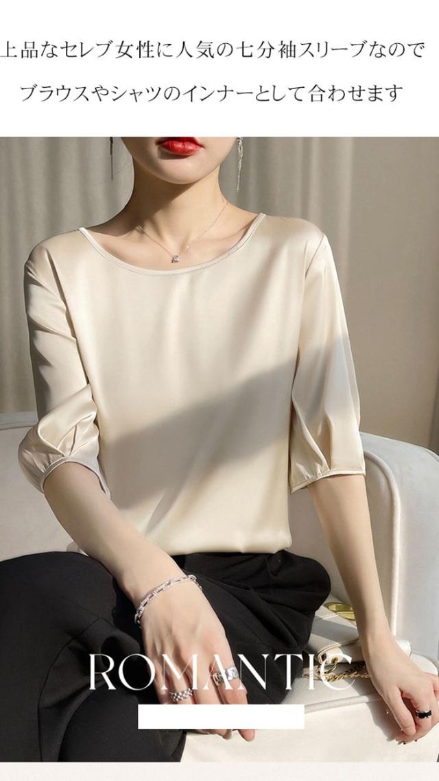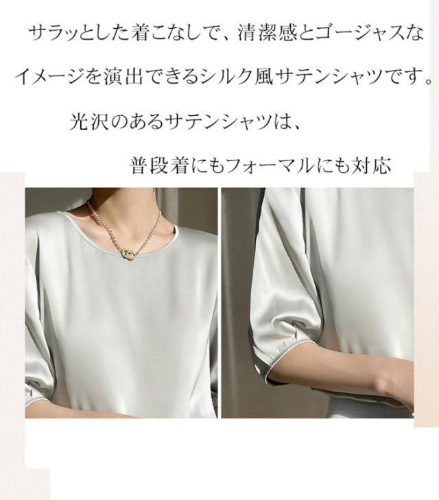 サテンブラウス 華奢見え 半袖 レディース おしゃれ トップス サテンブラウス シルクような触りレディースファッション トップス シャツ ブラウス