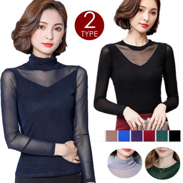 シースルー トップス インナー ハイネック Uネック 長袖tシャツ 演奏会 新生活レディースファッション トップス シャツ ブラウス