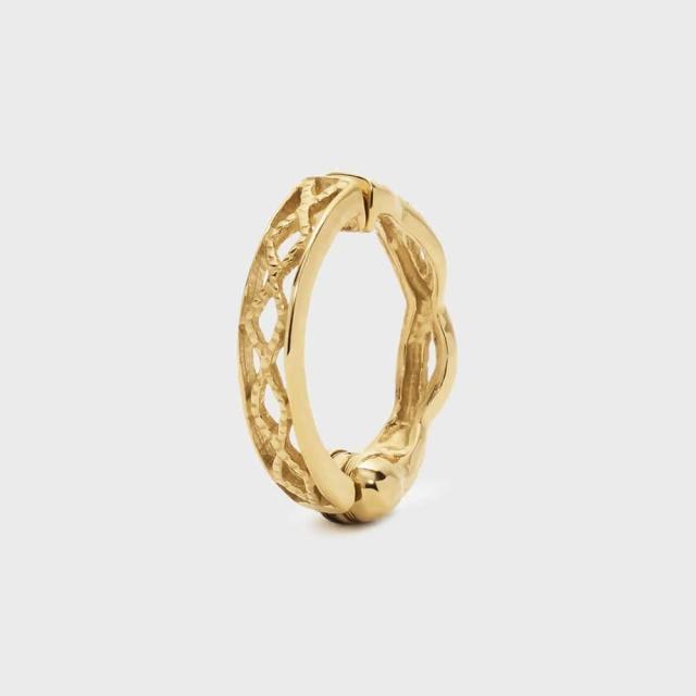 リバーシブルで使える開閉式イヤーカフ。ひし形が連なる繊細な透かし模様のデザインと、刻み模様が施された2本のラインが交差するデザイン。タイニーチャームを通してアレンジでき、イヤリングとしてもお使いいただけます。※繊細さを生かしたデザインの為、歪みなどの変形を防ぐ為にも、付けはずしの際など無理な力を加えないようにご注意下さいませ。※イヤーカフを外す際は、引っ張らず開いて外してください。※重いチャームを下げる際は、イヤーカフが落下してしまう恐れがありますのでご注意ください。※天然石や天然素材を使用しているものは、サイズ・色味・風合いの違いや、若干の傷、内包物の有無などに個体差があります。予めご了承ください。※ご着用の際は耳にフィットするように軽く押さえ、脱落しないことをご確認ください。※髪の毛や衣類などに引っ掛かることがありますので、着用時・着脱時の落下にはご注意ください。