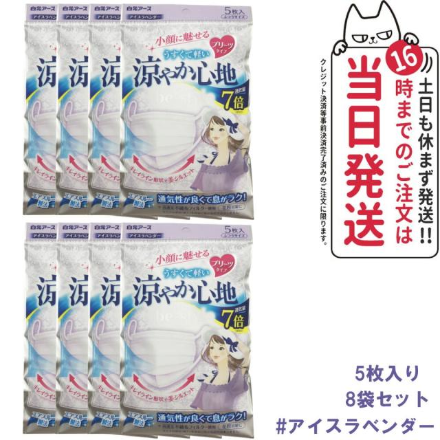 【8個セット】白元アース ビースタイル プリーツタイプ 涼やか心地 【アイスラベンダー】 5枚 マスク 送料無料