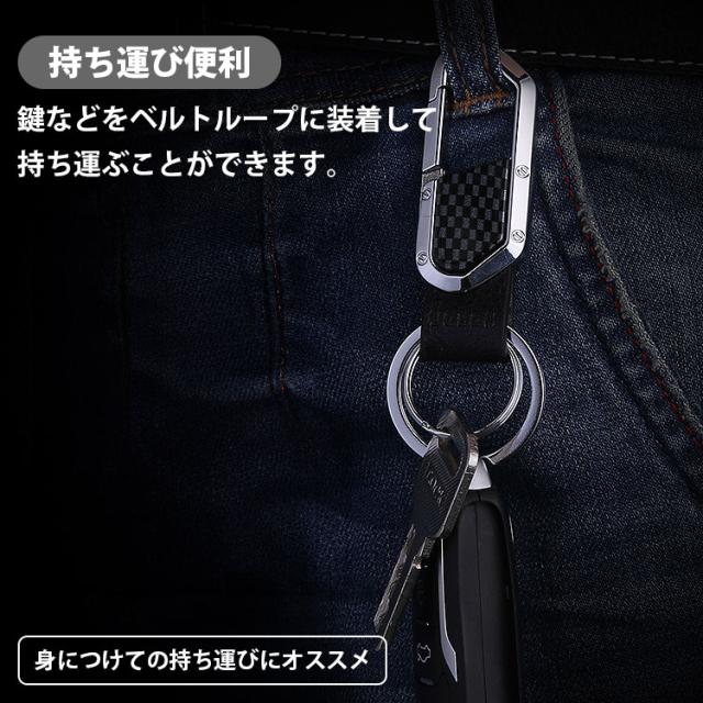 鍵などをベルトループに装着して持ち運ぶことができます。