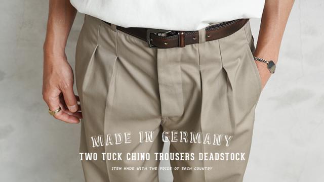| 商品名 | MADE IN GERMANY 新品 デッドストック T/Cツイル ツータック チノトラウザーズ | |||||||||||||||||||||||||