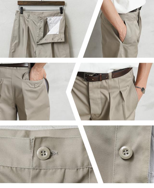 MADE IN GERMANY 新品 デッドストック T/Cツイル ツータック チノトラウザーズ / ドイツ製【Cx】【I】|チノパン ミリタリー メンズ ボトムス ヴィンテージ TCツイル M52 軍パン 太め テーパード ボタンフライ カジュアル ミリタリーパンツ