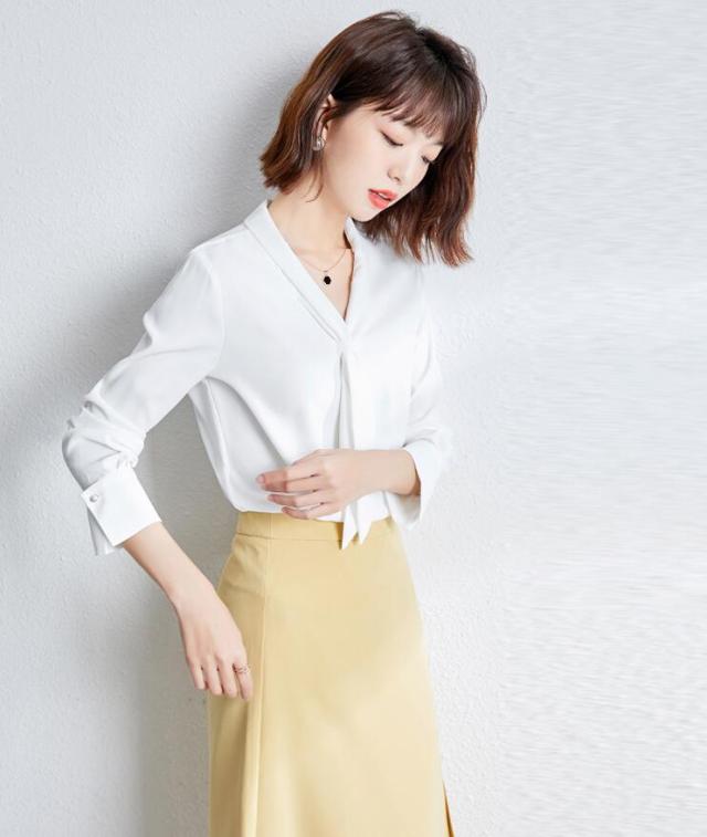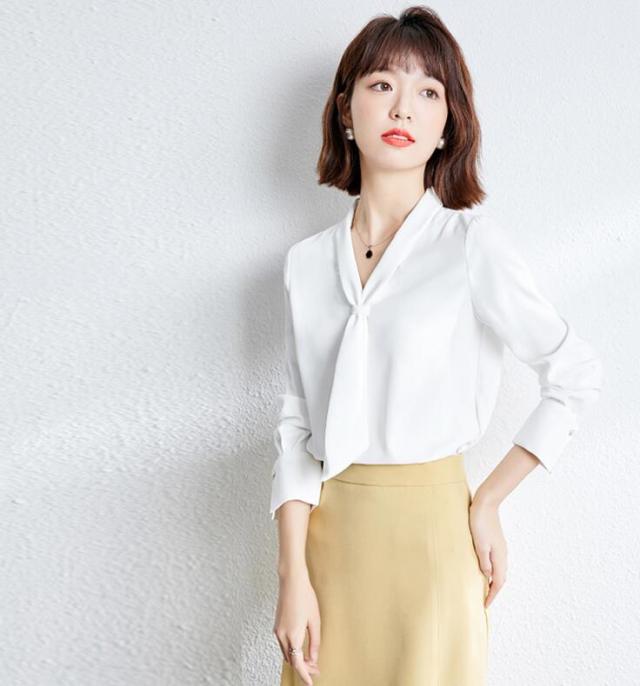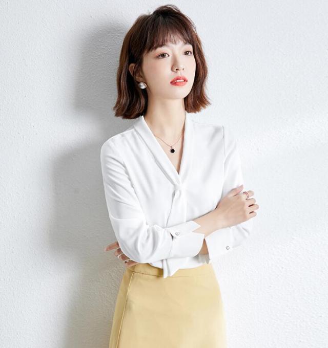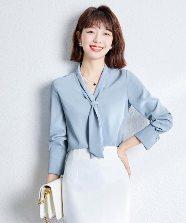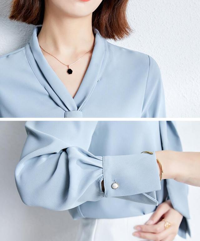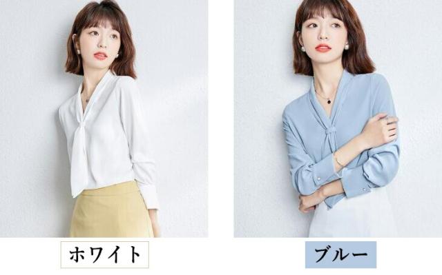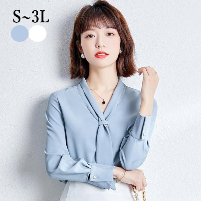 ブラウスシャツ ボウタイシフォン袖スリットレディーススーツ インナー Vネック胸元 長袖 大きいサイズカジュアルフォマール通勤卒業式 卒園式 オフィス S M L2L3L