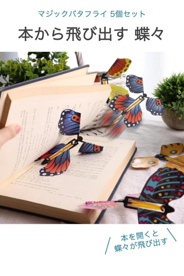 マジックバタフライ 本から飛び出す蝶々 5個セット 色ランダム フライングバタフライ 驚く おもちゃ 6歳以上 パーティー カラフル 小道具 ゴム 回して 挟むだけ 子ども マジック 手品 飛び出すちょうちょ 蝶々 簡単 輪ゴム パタパタ かわいい