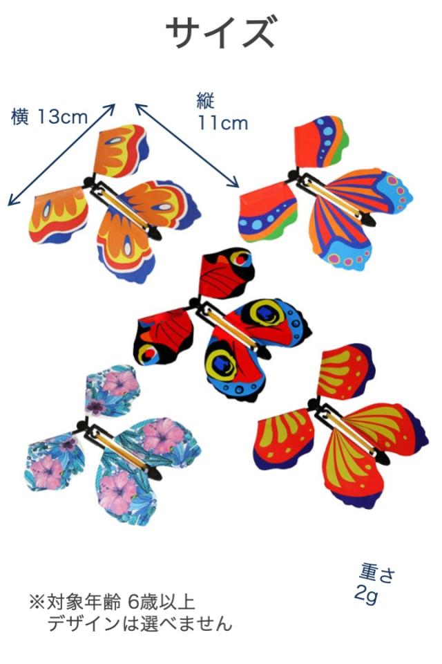 商品名:マジックバタフライ 本から飛び出す蝶々 5個セット 色ランダム フライングバタフライ 驚く おもちゃ 6歳以上 パーティー カラフル 小道具 ゴム 回して 挟むだけ