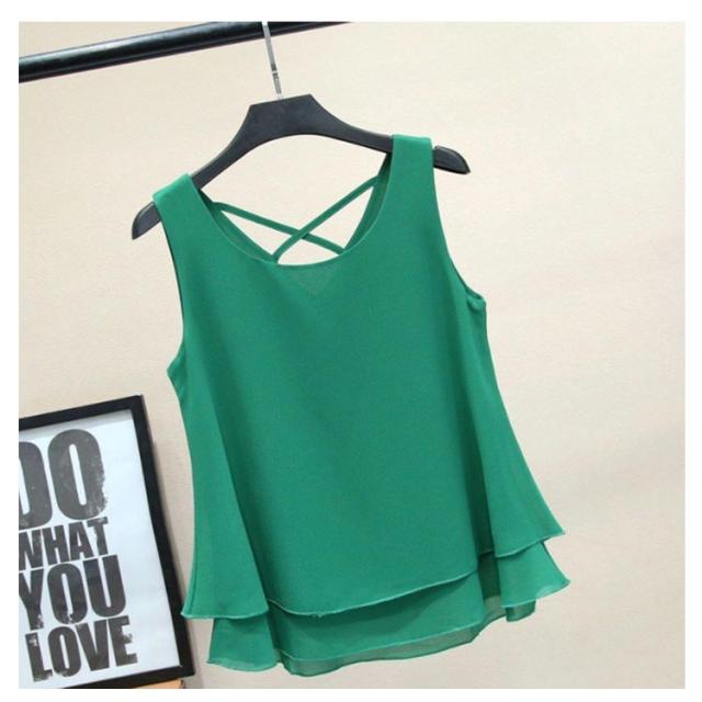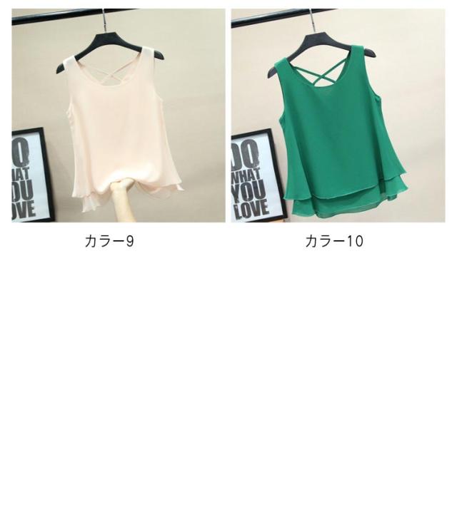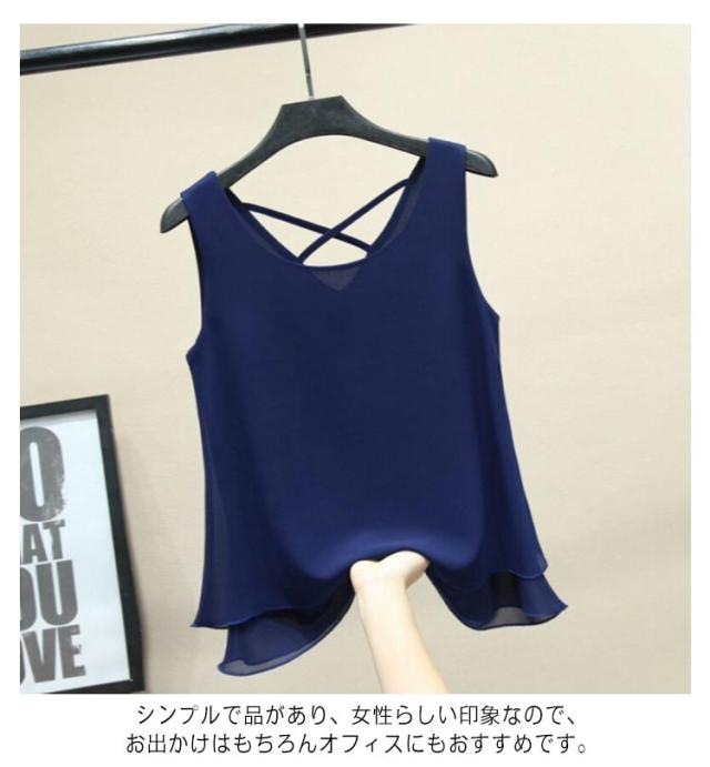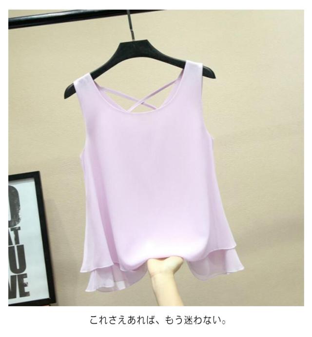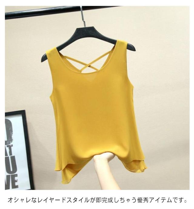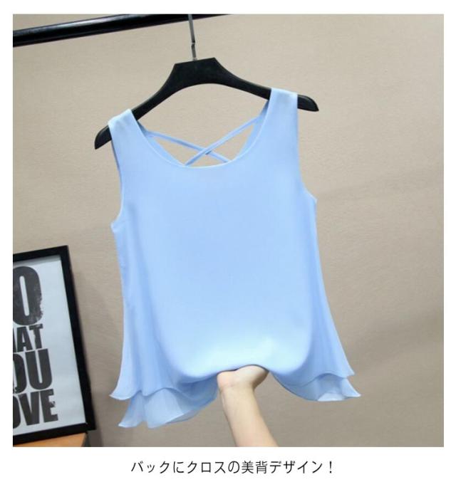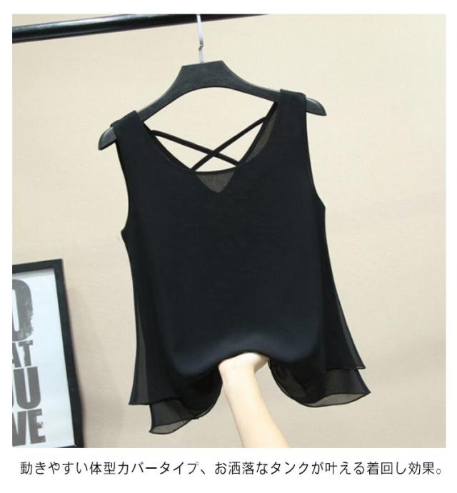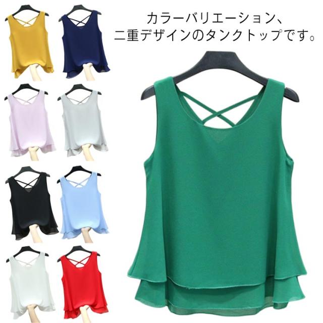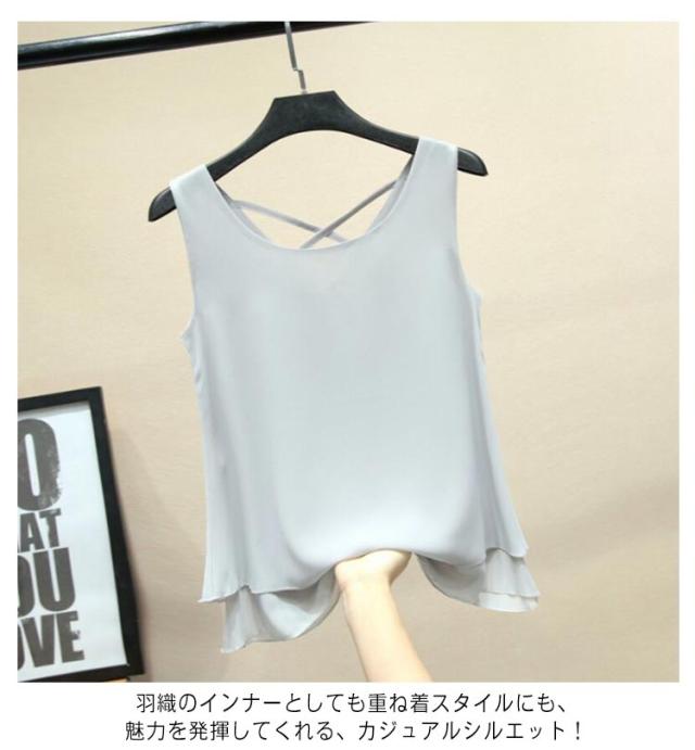 二重裾 タンクトップ レディース バッククロス シフォン タンクトップ ノースリーブ トップス シフォンタンクトップ 薄手 重ねる シンプル 夏 夏服 レイヤード ノースリーブシャツ フェミニン 大きいサイズ S M L XL 2XL 3XL 4XL 5XL 6XL