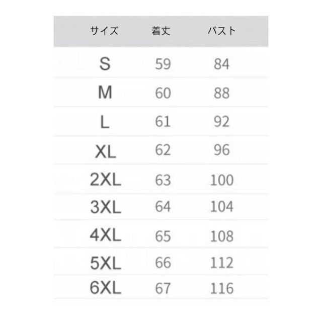 | サイズ | S M L XL 2XL 3XL 4XL 5XL 6XL |