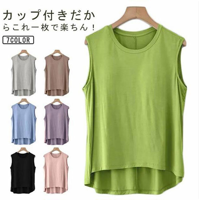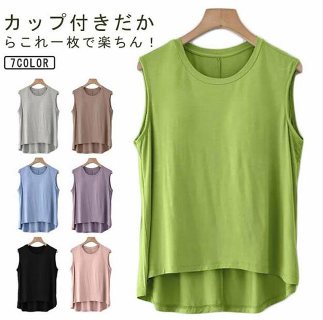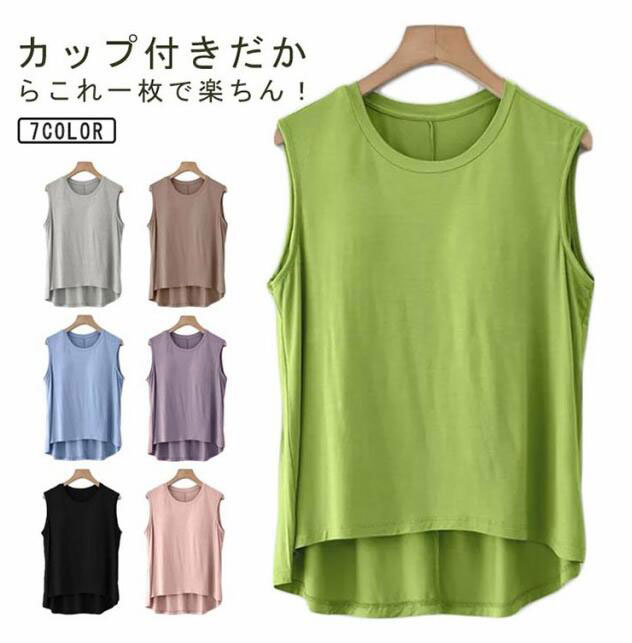 タンクトップ カップ付き レディース ブラ紐隠し トップス インナー ブラトップ ノースリーブ Tシャツ 下着 無地 締めつけない 通気性 ストレッチ ルームウェア 夏 パジャマ カップ入