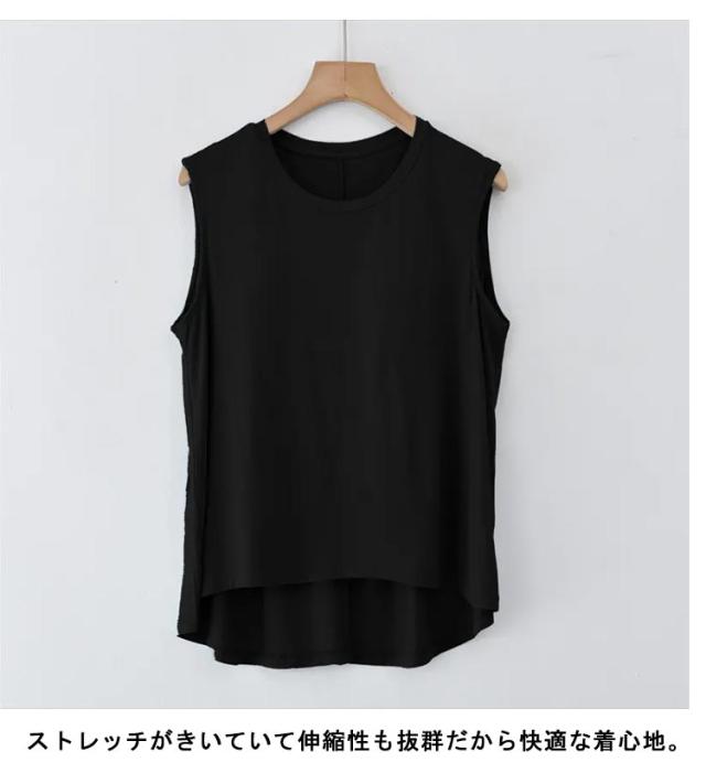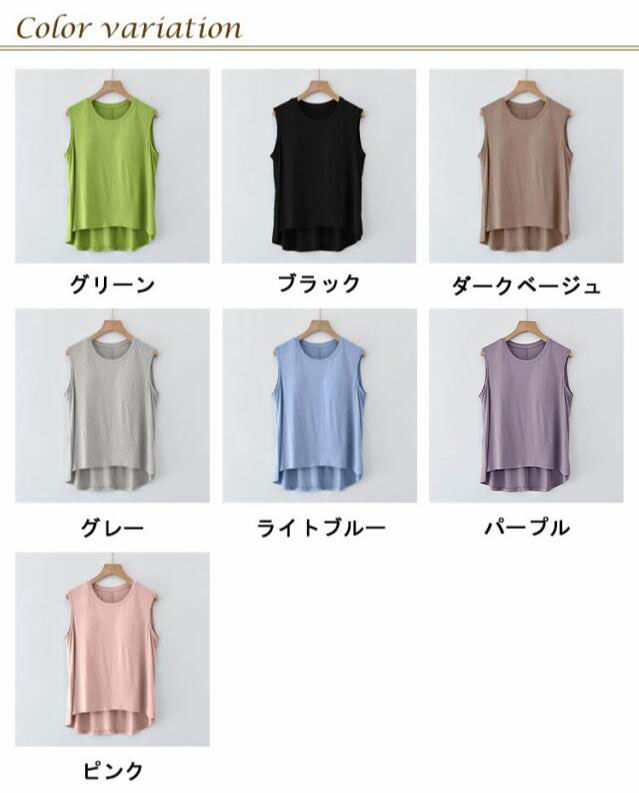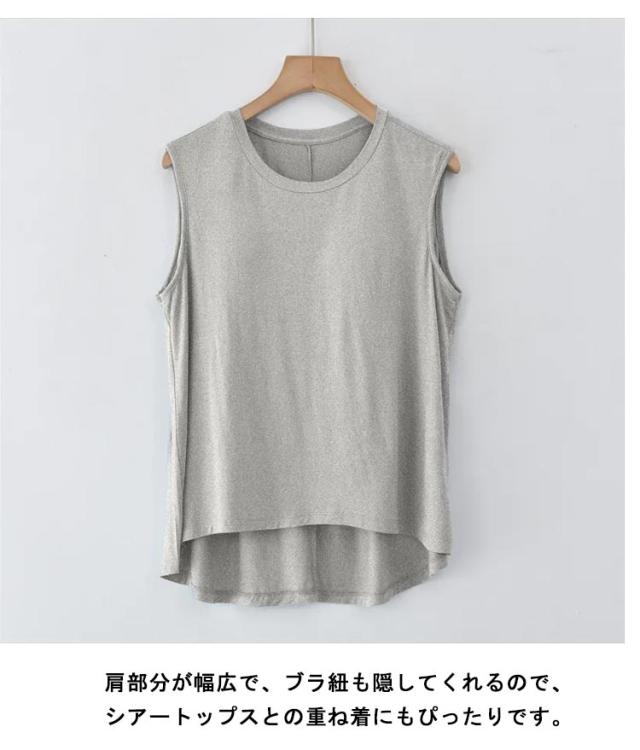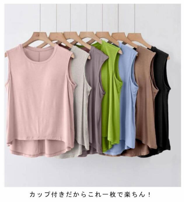| カップ付きだからこれ一枚で楽ちん! 滑らかな肌触りで通気性抜群! ストレッチがきいていて伸縮性も抜群だから快適な着心地。 ノンワイヤーだから苦しくない! 肩部分が幅広で、ブラ紐も隠してくれるので、シアートップスとの重ね着にもぴったりです。 | |