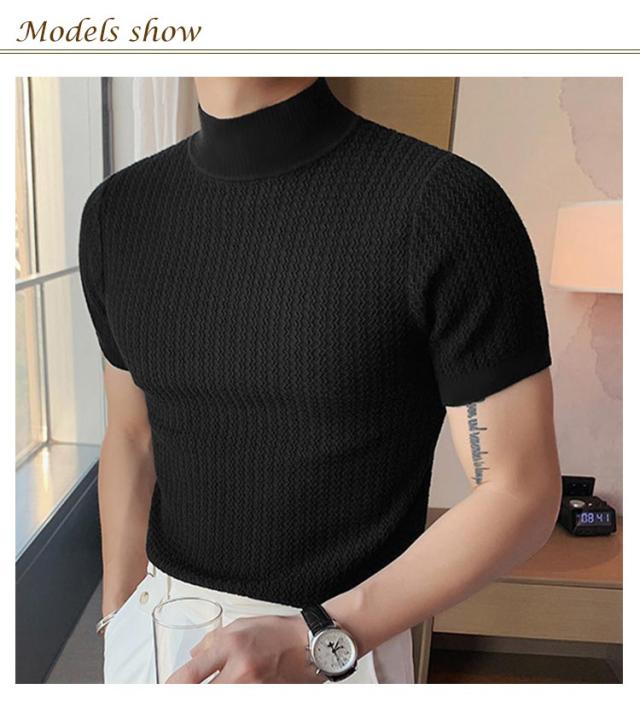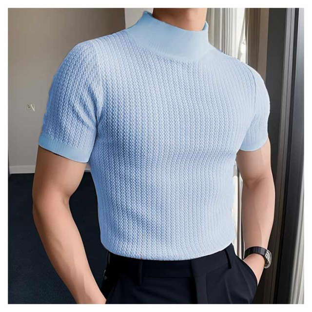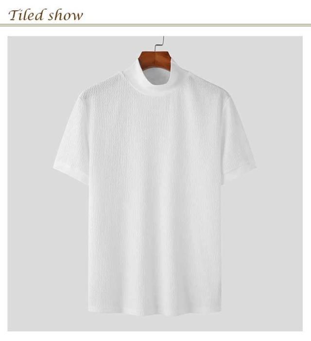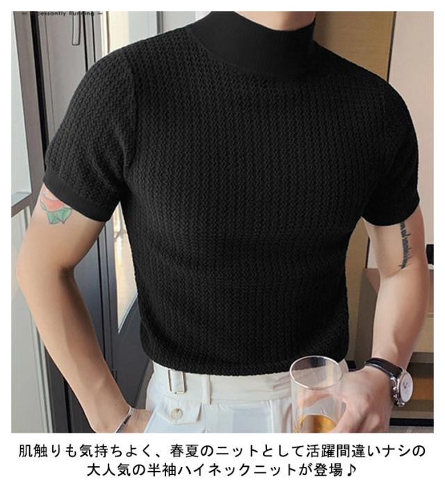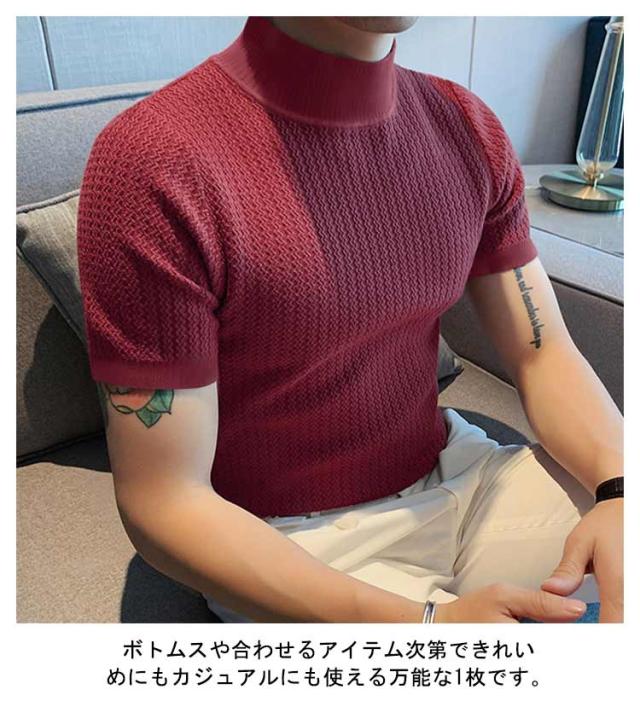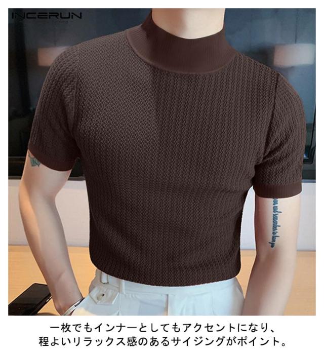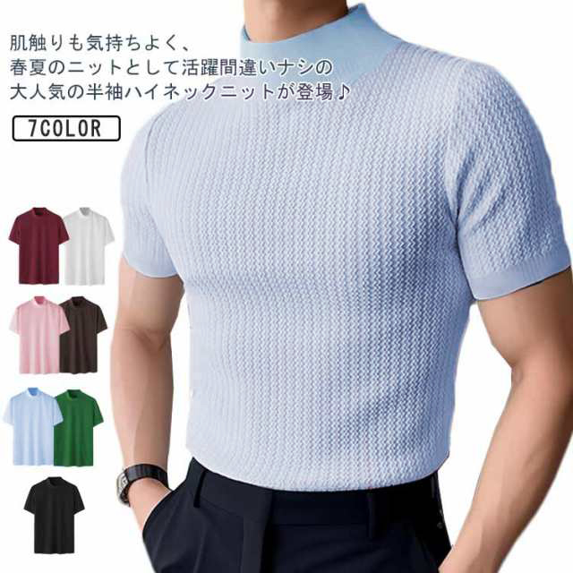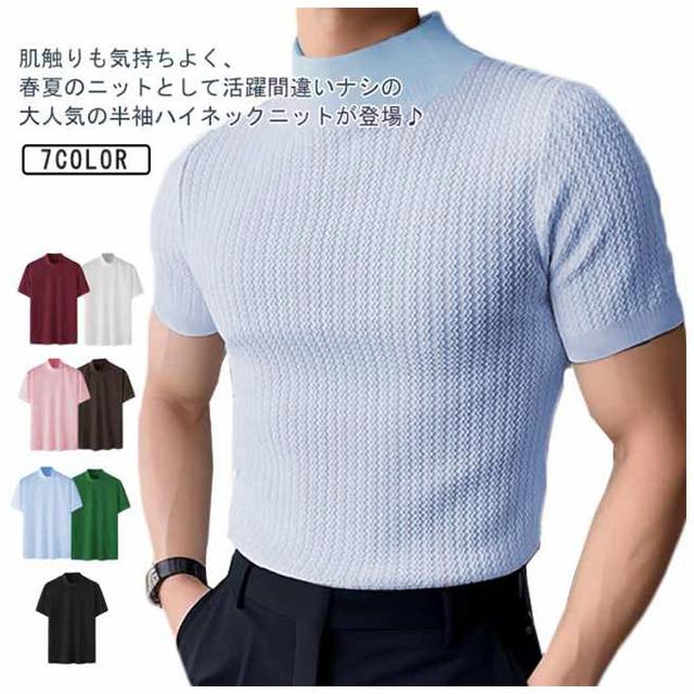 メンズ Tシャツ 半袖 ハイネック サマーニット インナーシャツ ストレッチ タートルネック トップス 男性 サマーセーター カジュアル ビジネス 無地 スリム 無地 細身 春夏 カットソー 柔らかい 快適 夏服 普段着