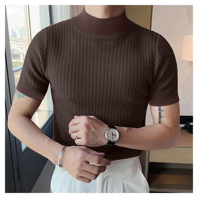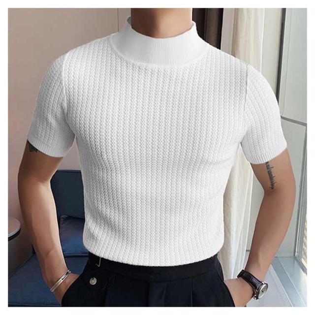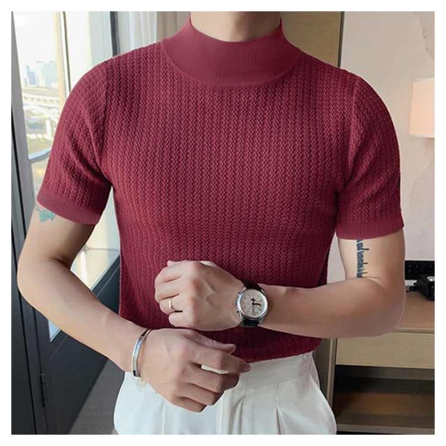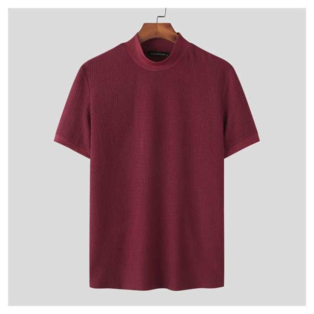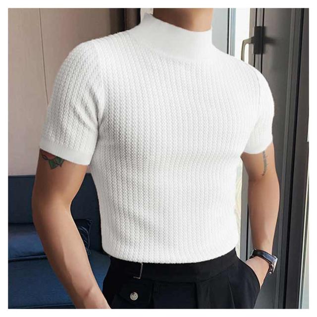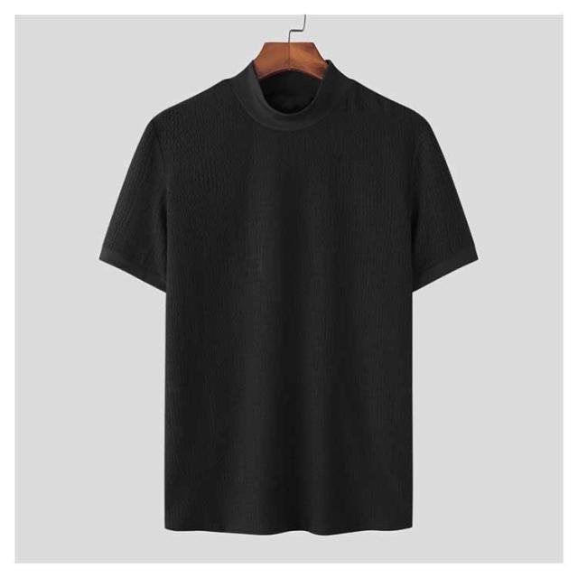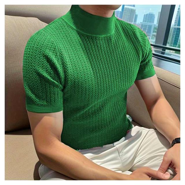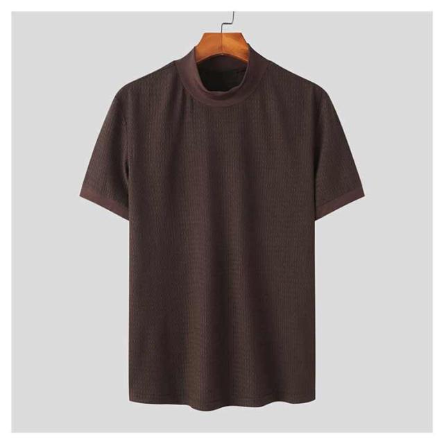 メンズ Tシャツ 半袖 ハイネック サマーニット インナーシャツ ストレッチ タートルネック トップス 男性 サマーセーター カジュアル ビジネス 無地 スリム 無地 細身 春夏 カットソー 柔らかい 快適 夏服 普段着