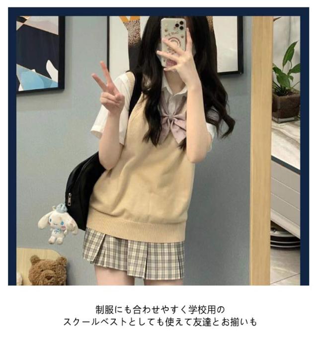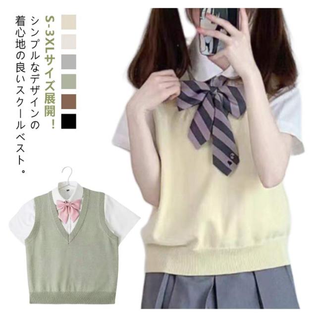 スクールベスト 薄い ニットベスト 制服 無地 Vネック レディース ニットセーター ノースリーブ 高校生 中学生 女子高生 JK制服 コスチューム 学生服 通学 イベント 春 夏 秋 冬 送料無料