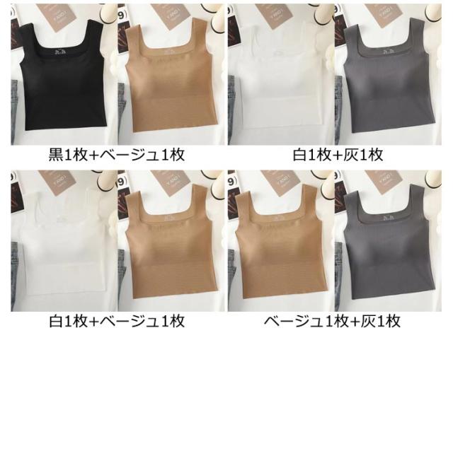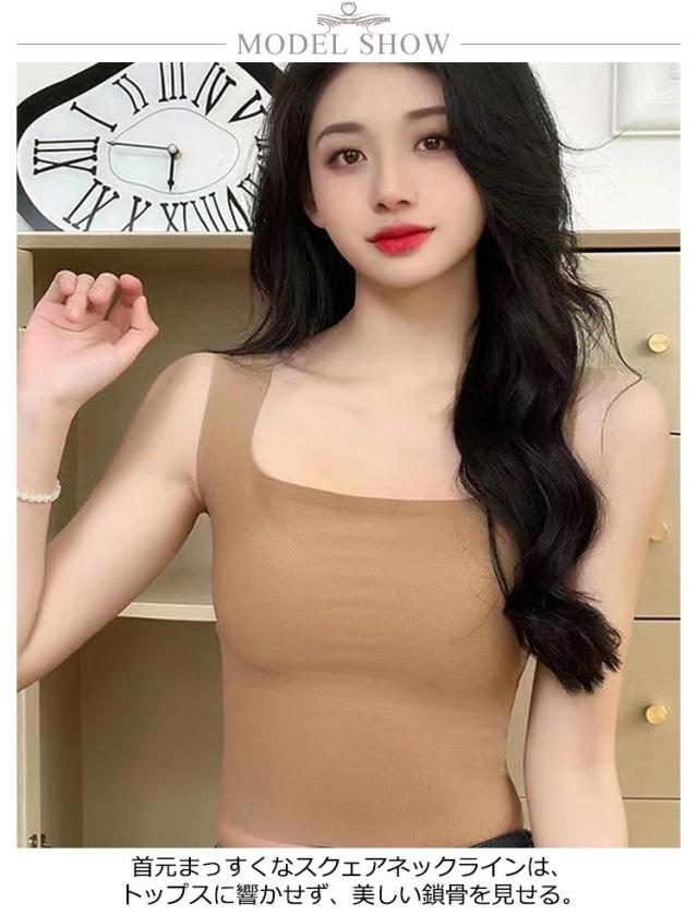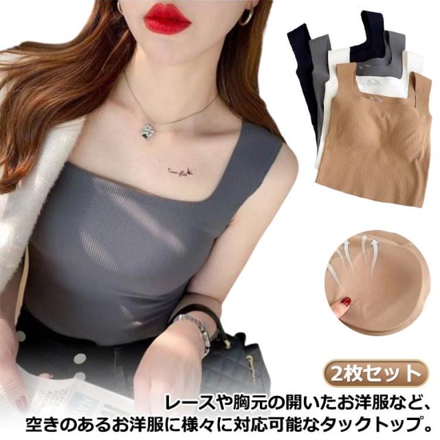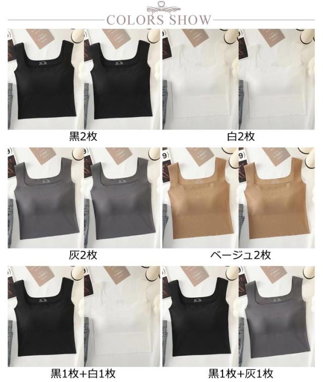 タンクトップ カップ付き 2枚セット キャミソール スクエアネック ブラトップ タンクトップ シームレス ノンワイヤー スクエアネック カップ付きインナー ナイトブラ ブラキャミ 夏 レディース 黒 白 灰 ベージュ