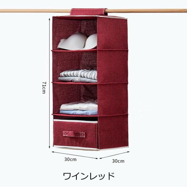 ・ポールに巻きつけるだけで、簡単にしっかりと止めることが出来ます。サイズ 約71*30*30cm素材 綿麻、不織布生産国 中国カラー ワインレッド、ベージュ、ネイビー、ダークグレーセット内容 吊り下げ収納ラック+引出し*1個注意 PC環境・光の具合により、色や素材のイメージが写真と若干異なる場合がございます。