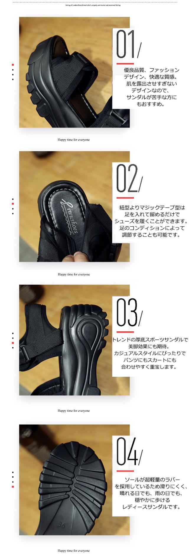 オフィスや日常生活で気軽に履ける厚底サンダルです。女性らしい印象が高まり、様々なアイテムと合わせやすいのも嬉しいポイントです。これから夏に重宝することに間違いないレディース オフィスサンダルです!サイズ 33-40