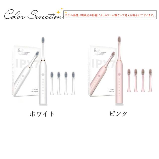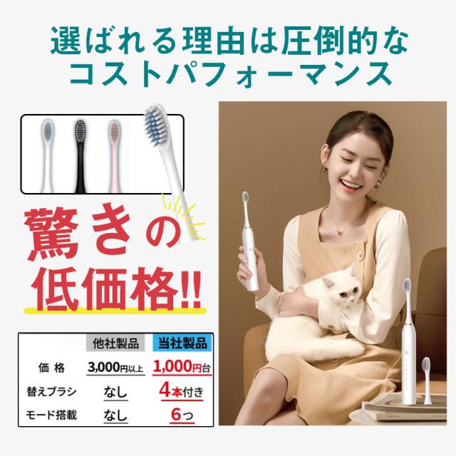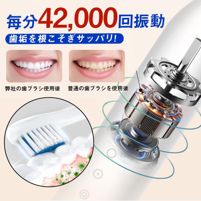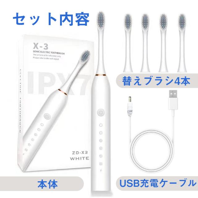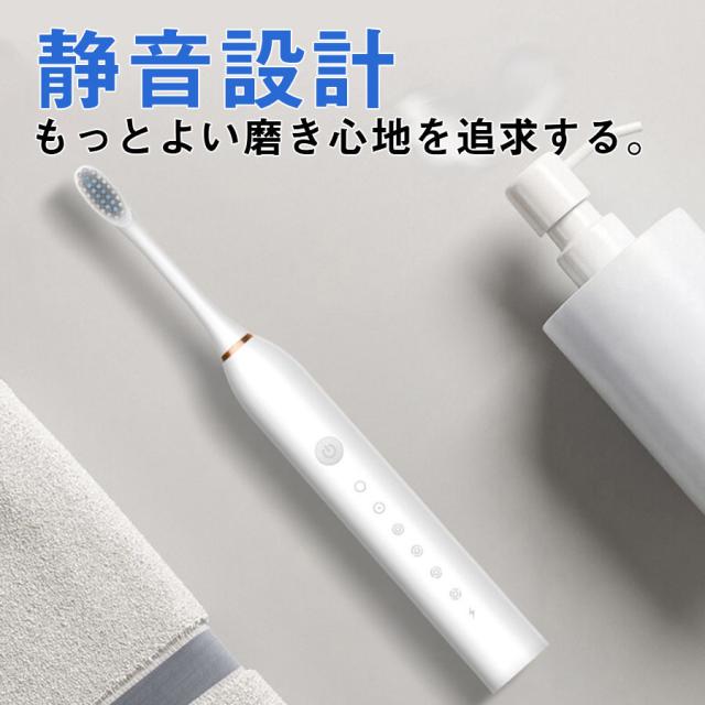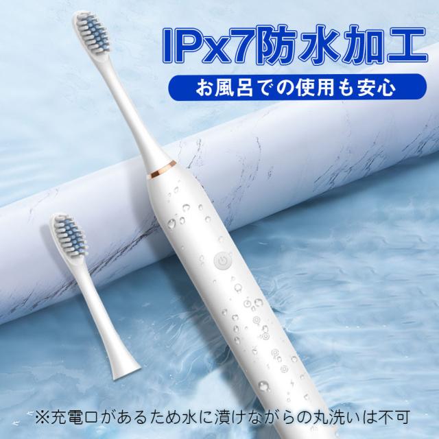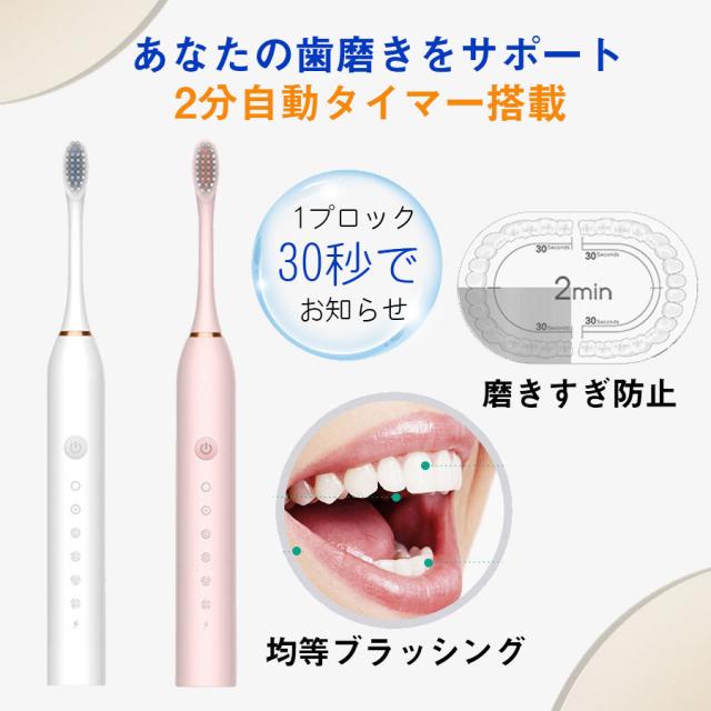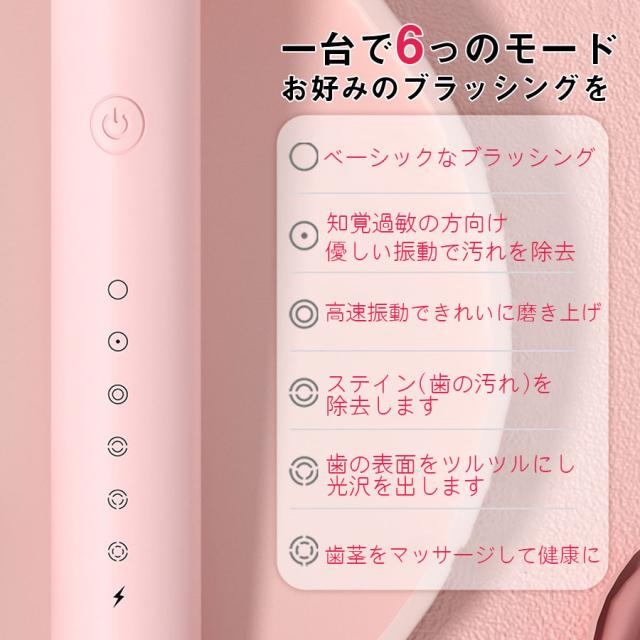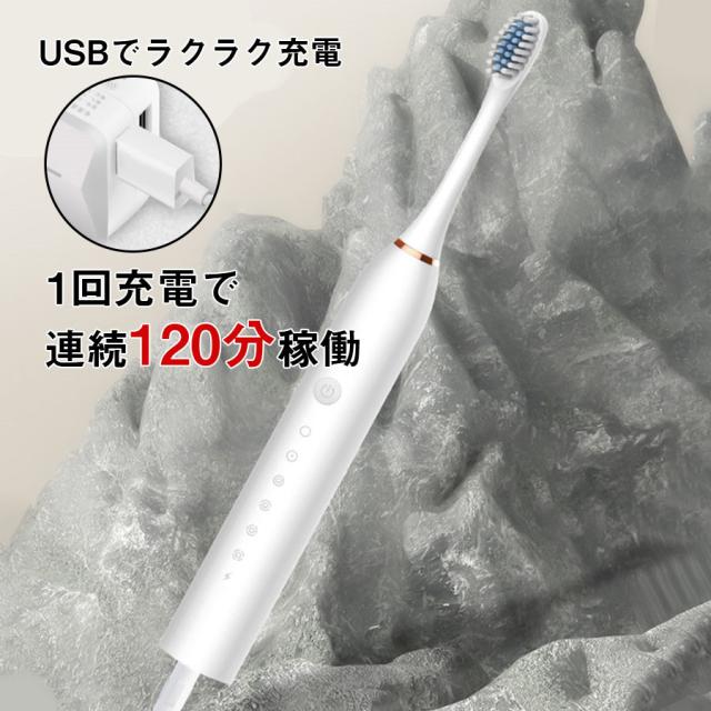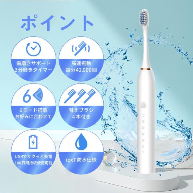 【2点ご購入で300円OFF!】即納 電動歯ブラシ 音波ブラシ 替えブラシ4本付き usb充電式 6モード 防水 歯石除去 歯垢除