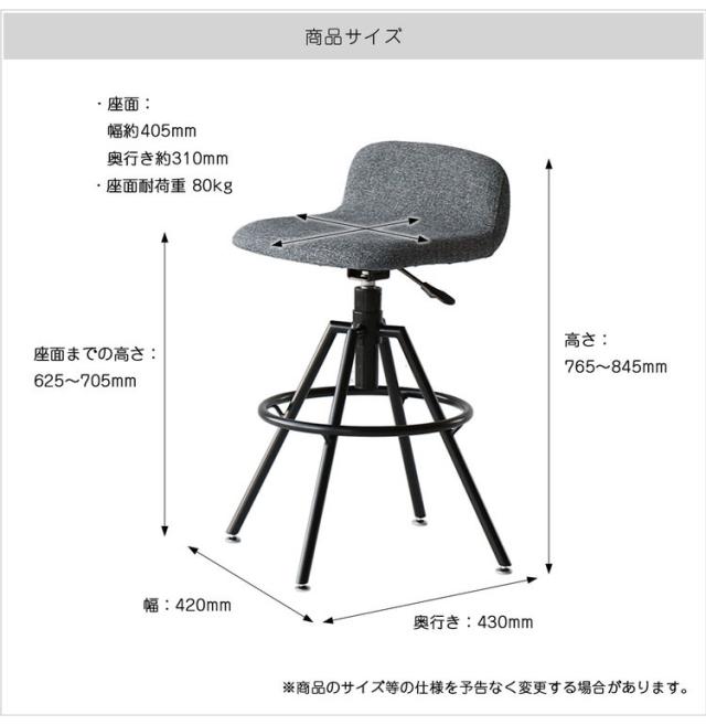 幅42×奥行43×高さ76.5〜84.5(座面高さ62.5〜70.5)座面幅40.5