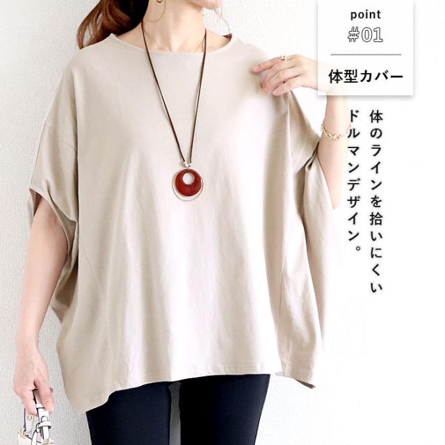春新作 トップス レディース 半袖 シャツ カットソー ドルマン ノースリーブ 体型カバー 夏 [郵1.5]^t1057^ ★