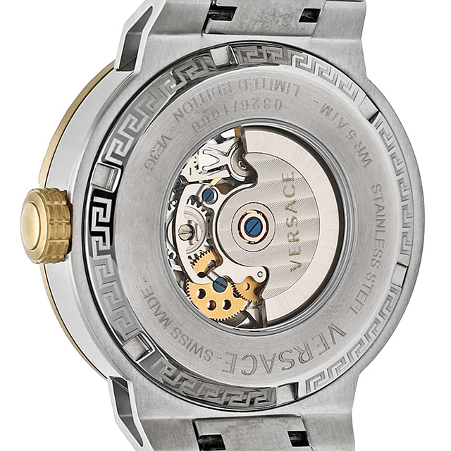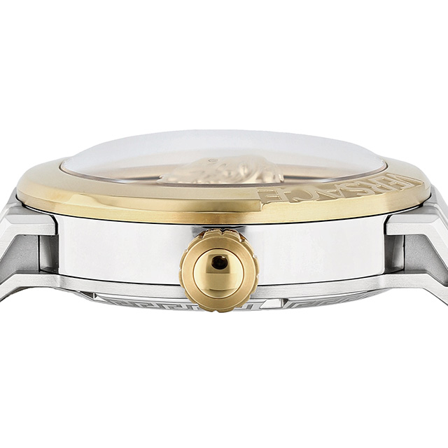 7年保証キャンペーン ヴェルサーチ メデューサ インフィニット スケルトン オープンハート スイス製 レディース 腕時計 VE3G00122 VERSACE MEDUSA INFINITE SKELETON アナログ スケルトン シルバー ゴールド ◆VERSACE(ヴェルサーチ)は、1978年にジャンニ・ヴェルサーチにより設立されたイタリアブランドです。ジャンニ亡き後、妹のドナテラ・ヴェルサーチが引き継いで先任デザイナーに就任。ヴェルサーチウォッチはすべてスイスで作られており、高品質かつ高精度さが魅力です。古典と現代の完璧なバランスをもつデザインは、幅広い世代に好まれています。 ブランドアイコンの「フローティングメデューサ」と、シンボリックモチーフであるグレカ模様を立体的にデザインした、機械式時計。見る角度によって異なる表情を楽しめます。高級感あるデザインで、腕元を華やかにしてくれます。 機械式腕時計
