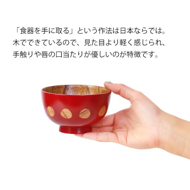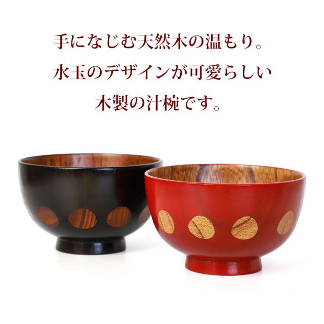 汁椀 天然木製 お椀 おわん 水玉 みずたま スープボウル レトロ 漆塗り 大和型 お碗 おしゃれ モダン かわいい 割れない 割れにくい 赤 レッド 黒 ブラック お味噌汁の汁椀 お雑煮 正月 和風 和食器 和雑貨 うるし塗り 漆 漆器 木製