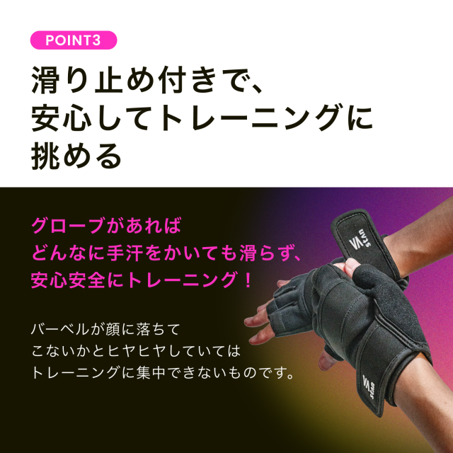 ・これらによってトレーニングに集中でき、より安全にトレーニングすることができます!