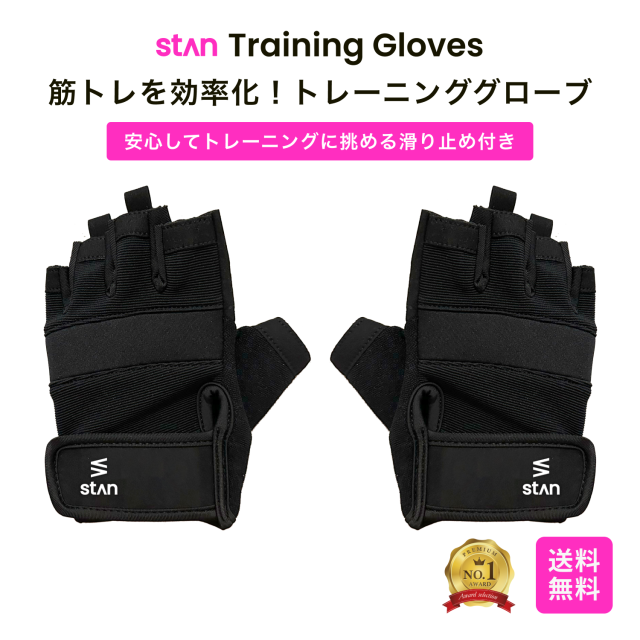 stan トレーニンググローブ ブラック S/M/L/XL 筋トレ ジム 強力グリップ 手首保護 滑り止め 男女兼用 耐久性 軽量