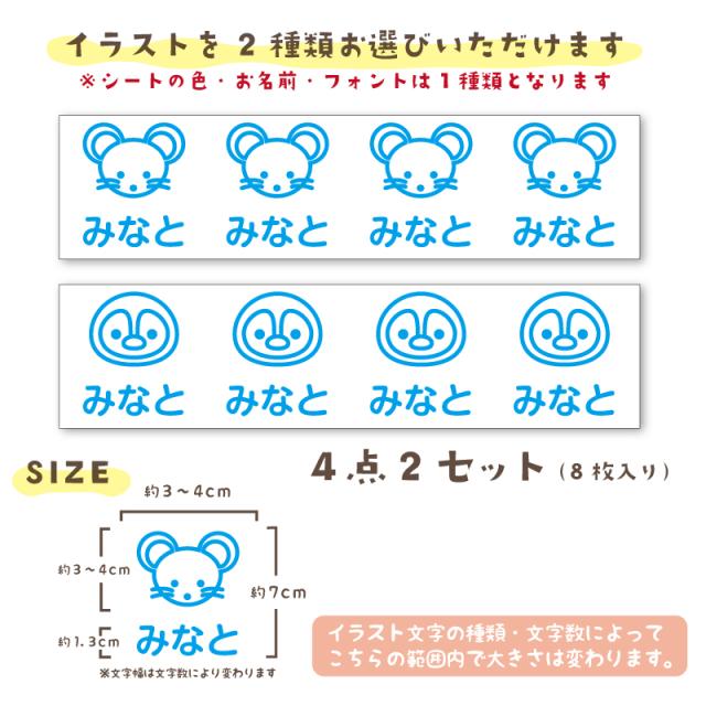 お名前ステッカー (動物シリーズ)4点2セット 8枚入り お名前シール おなまえシール ネームシール 防水 耐水 お昼寝布団 幼稚園 保育園 小学校 上履き 帽子 服 はっきり 名入れ オーダーメイド ネームステッカー 入園準備 自転車 水筒 お弁当箱 コップ カッティングシート