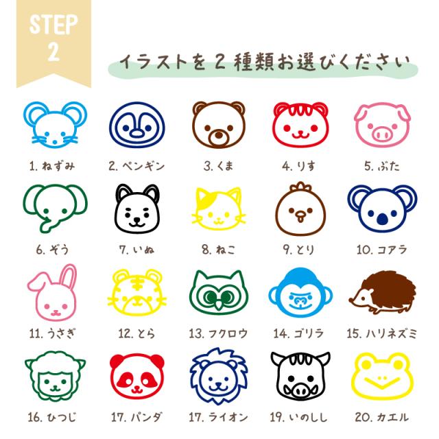 背景が残らないかわいい動物のお名前ステッカーです。