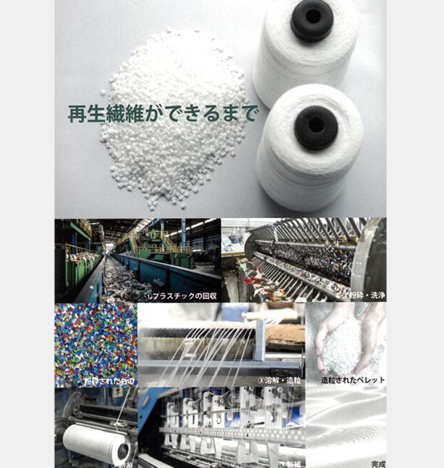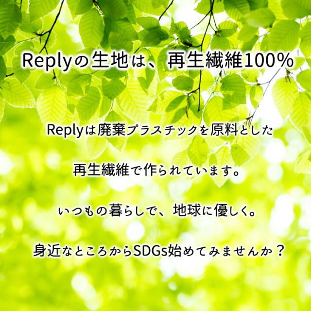 REply(リプライ)の生地は廃棄プラスチックを原料とした再生繊維を100%使用しております。