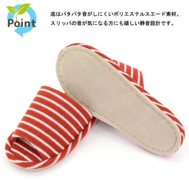 底はパタパタ音がしにくいポリエステルスエード生地。スリッパの音が気になる方にも嬉しい静音設計です。
