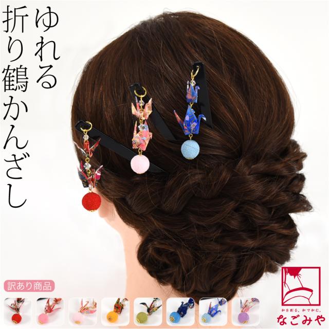 和装 髪飾り 小紋 紬 浴衣 通年用 日本製 訳あり 折り鶴 ぶらぶら玉簪 かんざし 簪 一本差し おしゃれ 大人 レディース 女性10023948