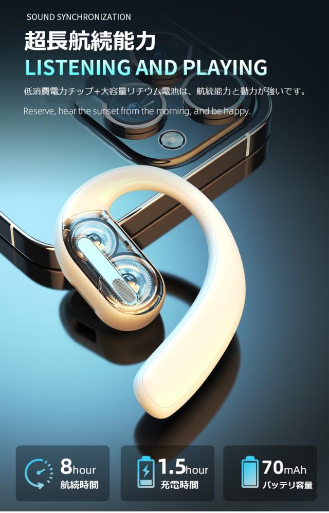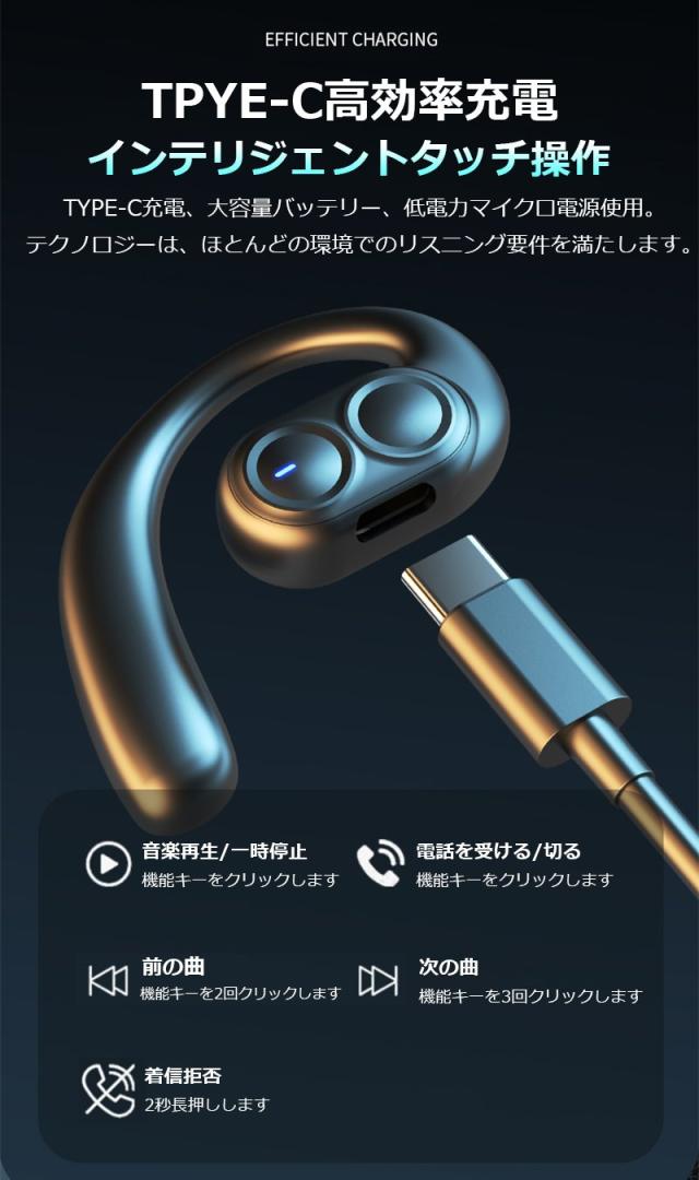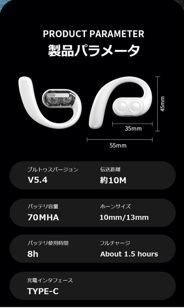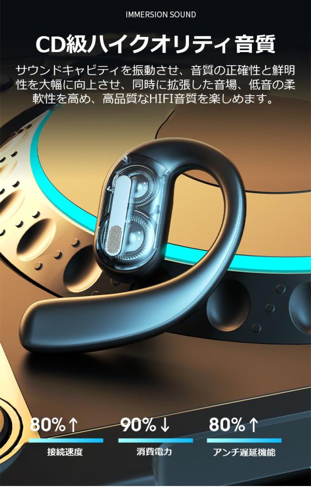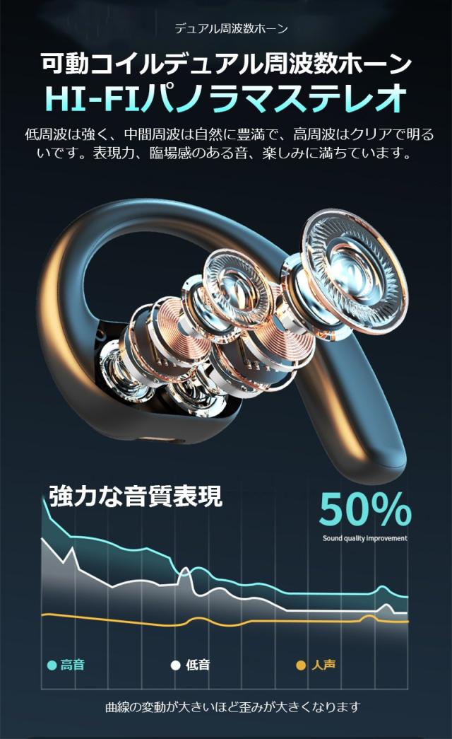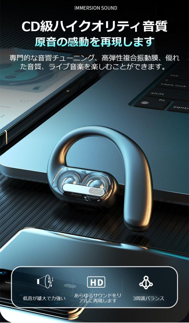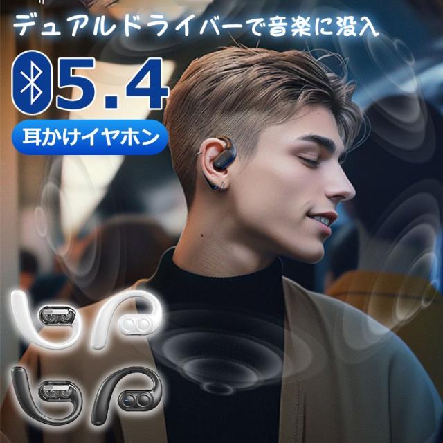 空気伝導 ワイヤレスイヤホン Bluetooth5.4 デュアルドライバー 耳かけ式 空気伝導イヤホン 安定装着 ブルートゥース ステレオサウンド HiFi ENCノイズリダクション スポーツ向け