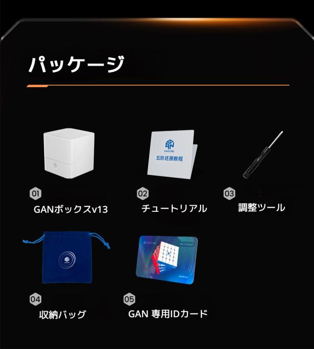 付属品:GANボックス、チュートリアル、調整ツール、収納バック、IDカード