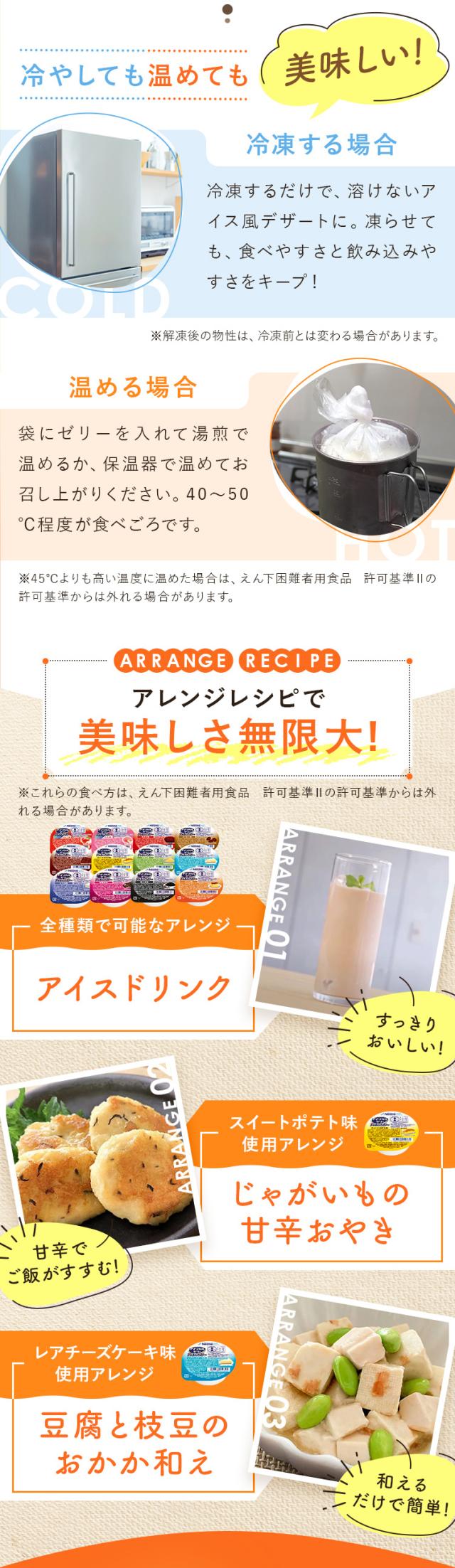 冷凍保存解凍後や湯煎後、食感が変化する恐れがあります。かむ力、飲み込む力が気になる方は必ずご確認の上、ご使用ください。