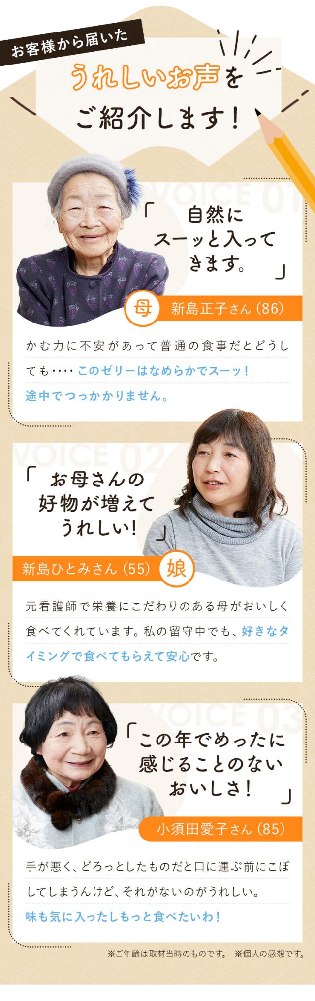 - 歯が悪く固形物が食べにくい父に買って見ました。いろいろな味があり美味しいと言って食べてくれてます。また購入したいと思います。